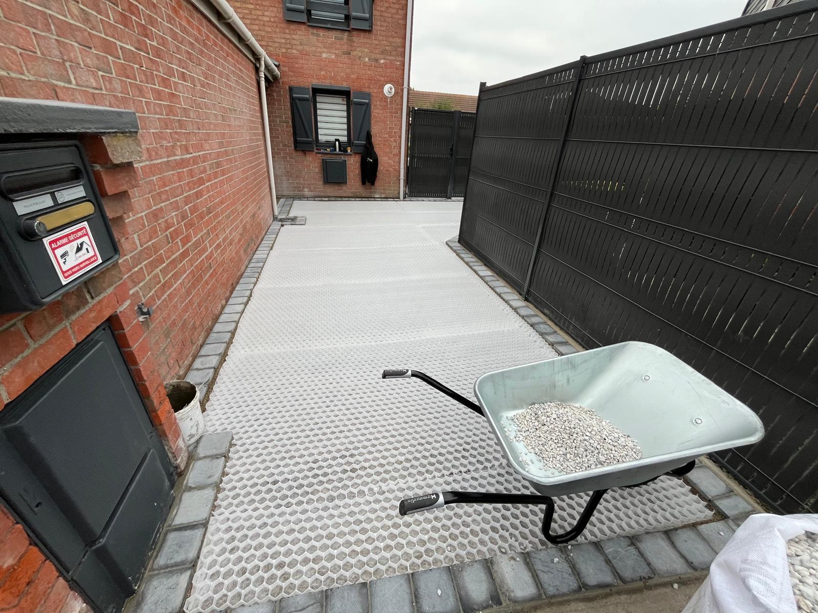 C’est l’une des alternatives les plus performantes que nous installons à Linselles. En utilisant des plaques alvéolaires ultra-résistantes, nous créons une surface parfaitement stable où le gravier ne bouge pas.