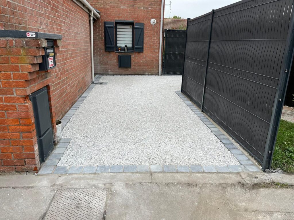 Avantages : 100% drainant, esthétique naturelle, pas de formation de flaques, et une grande variété de coloris de graviers pour s’accorder à votre façade.