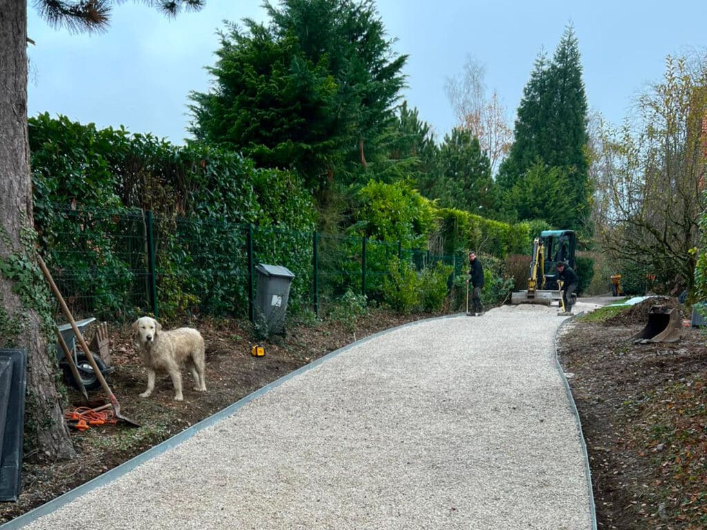 - Le terrassement technique : c’est l’étape la plus importante. Un bon fond de forme garantit que vos allées ne s’affaisseront pas avec le temps.